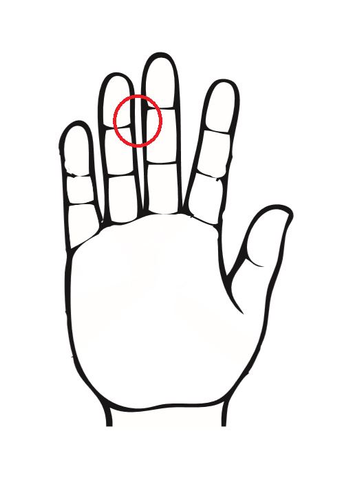 手の構造上、通常は中指と薬指は離れにくく大きく開きにくい作りになっています。一方、人差し指と中指は離れやすい作りになっていて、二つの指の間隔が大きくなる場合がほとんどです。